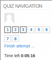 - A countdown timer is shown in the quiz navigation block