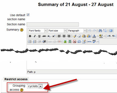 - The activities in each of the two optional modules can then be assigned to the respective groupings. With Moodle 2.3 it is possible to allocate whole course sections to groupings so it might be useful to add the activities to a particular course section to save administrative time.